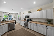 Step inside and you’re immediately greeted by soaring ceilings and an impressive two-story entry and living room that bring in natural light and a sense of spaciousness. The warm tones of engineered hardwood flooring flow throughout the main living areas on the first floor, offering style and durability.
