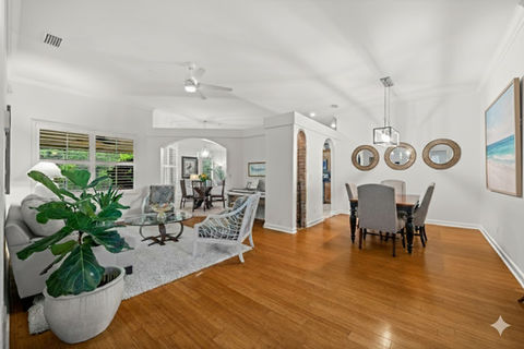 The real star is the back lanai overlooking the lake and preserve, where mornings feel calm and evenings invite you to slow down. A saltwater pool and lush landscaping make the outdoor space peaceful, private and just as livable as the inside.